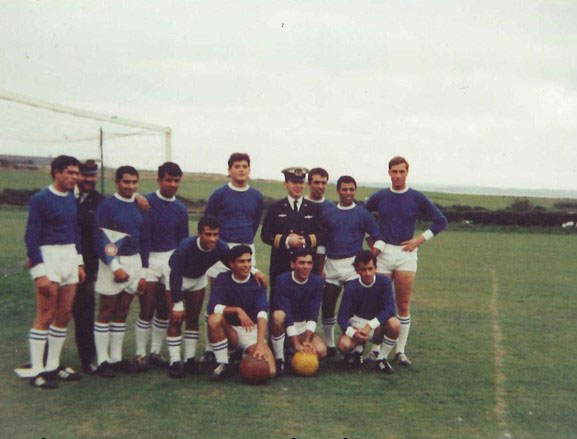 נבחרת הכדורגל של צוות דקר באנגליה, אברהם יושב עם הכדור